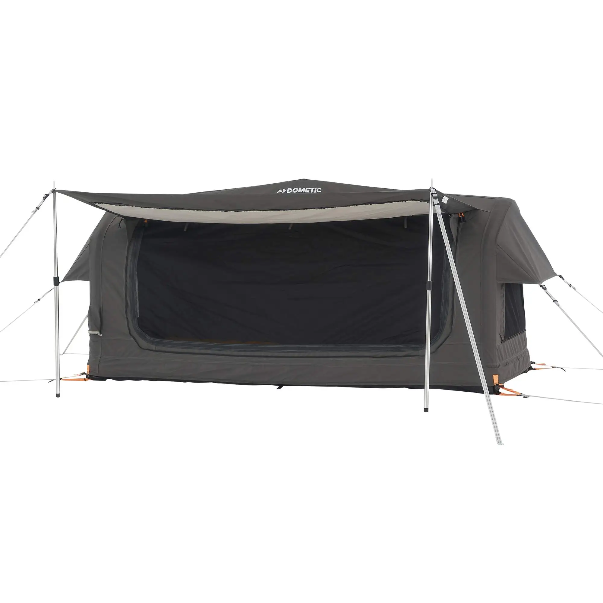 Die fest aufgepumpten Schläuche können mit bis zu 0,8 bar Druck aufgepumpt werden. Sie spannen das Material aus Baumwoll-Mischgewebe stramm ab. Ein breiter seitlicher Einstieg erleichtert den Zugang zum Zelt und ist mit einem Moskitonetz ausgestattet. Der Eingang kann bei Bedarf mit zwei Tarpstangen zu einem Vordach aufgespannt werden.