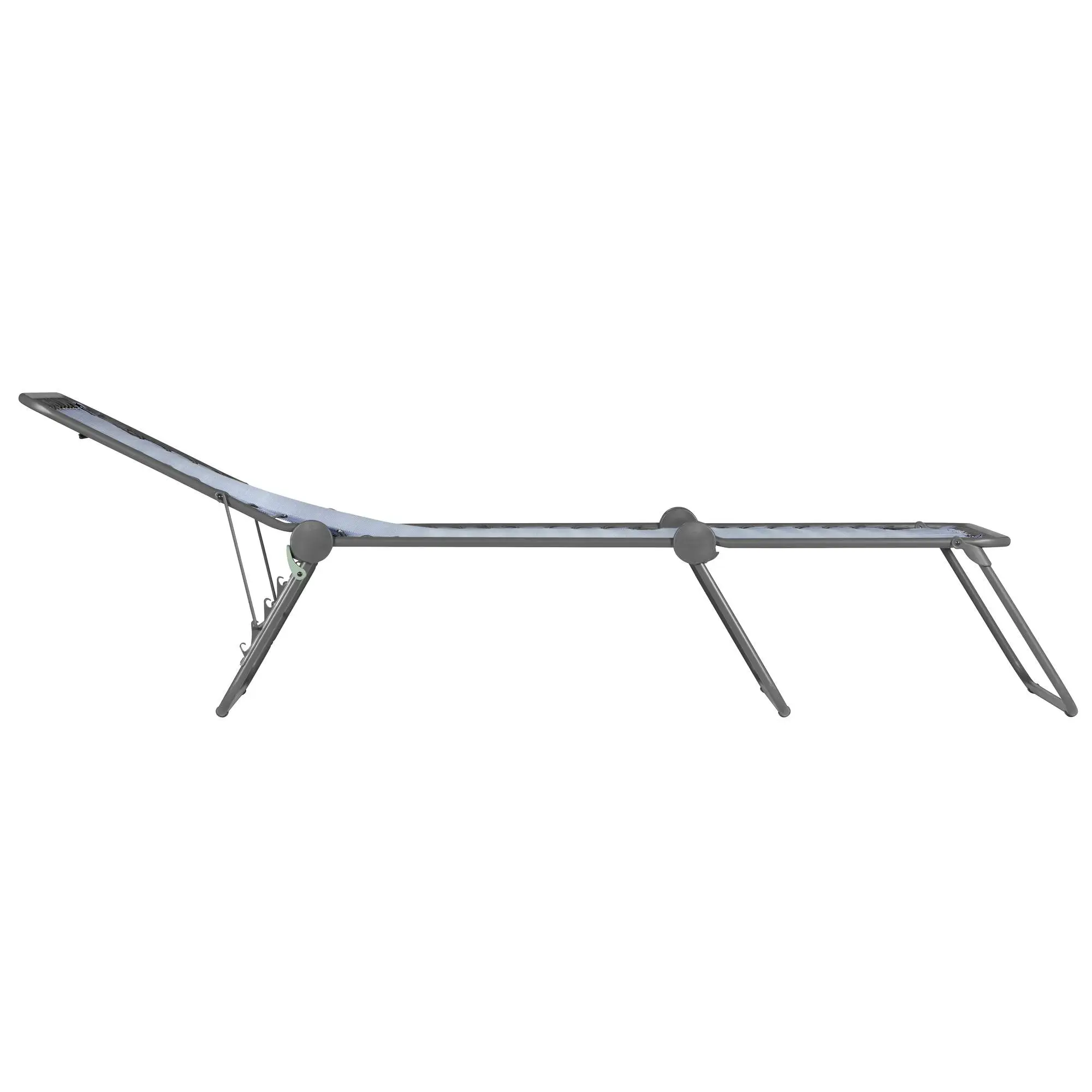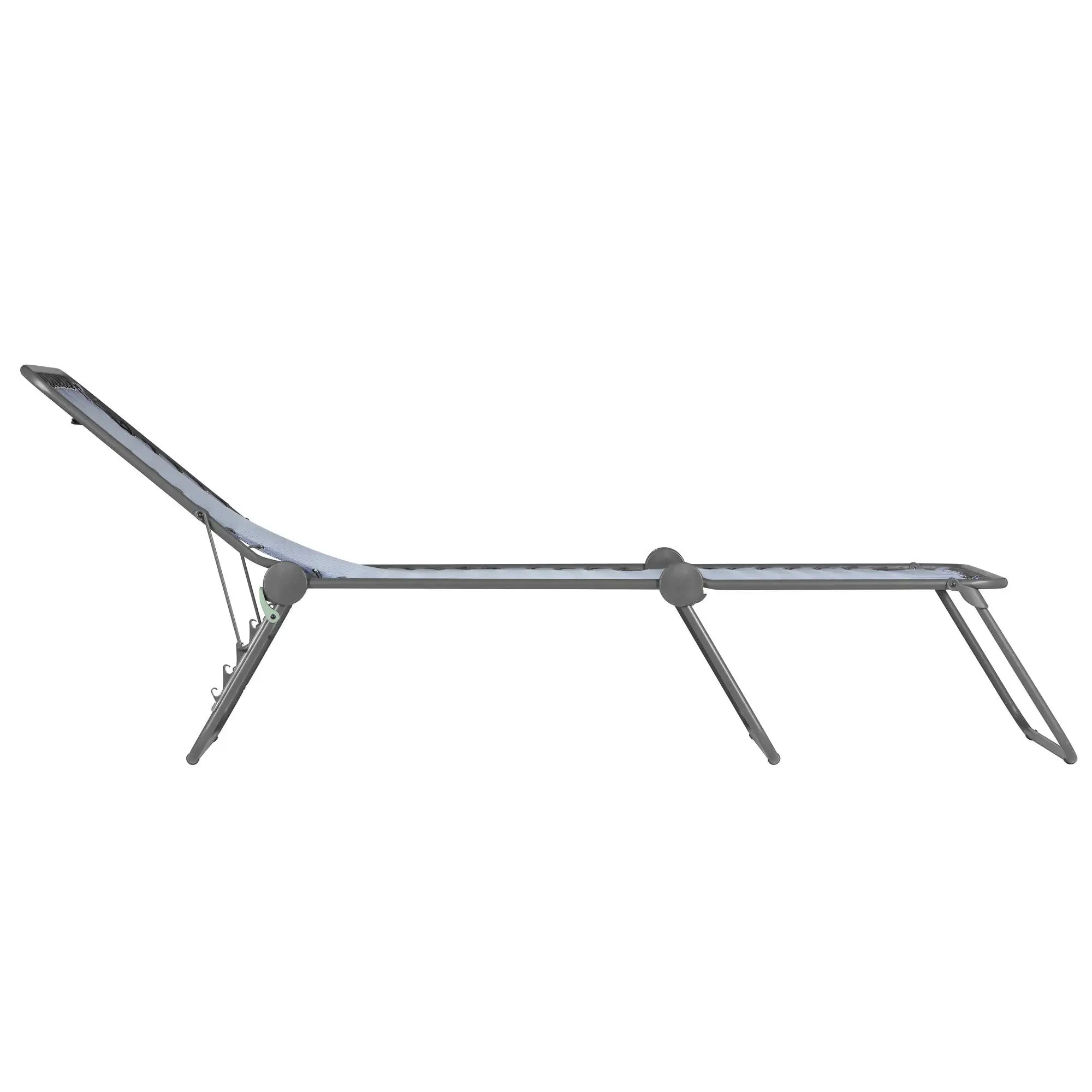 Der Bezug ist durch Gummischnüre elastisch aufgehängt und sorgt so für besonders hohen Komfort. Die Sonnenliege ist mit klassischer Klappfunktion ausgestattet. Die Liege ist widerstandsfähig und zusammengeklappt platzsparend.