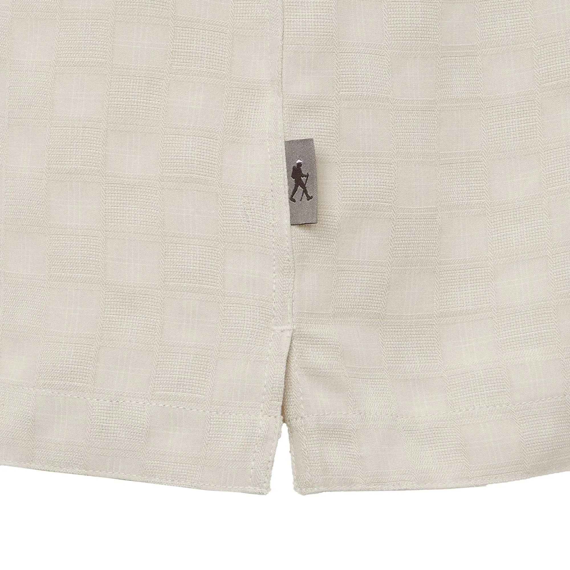Der lockere Schnitt, die kurzen Schlitze an den Seiten und die Bewegungsfalten am Rücken sorgen für viel Bewegungsspielraum. Durch die unterschiedliche Webart des Hemdes entsteht ein sehr dezentes Karomuster, das dem schlichten Hemd eine besonders schöne Note verleiht. Durch sein schnelltrocknendes und knitterfreies Material eignet sich das Hemd auch sehr gut für die Reise.