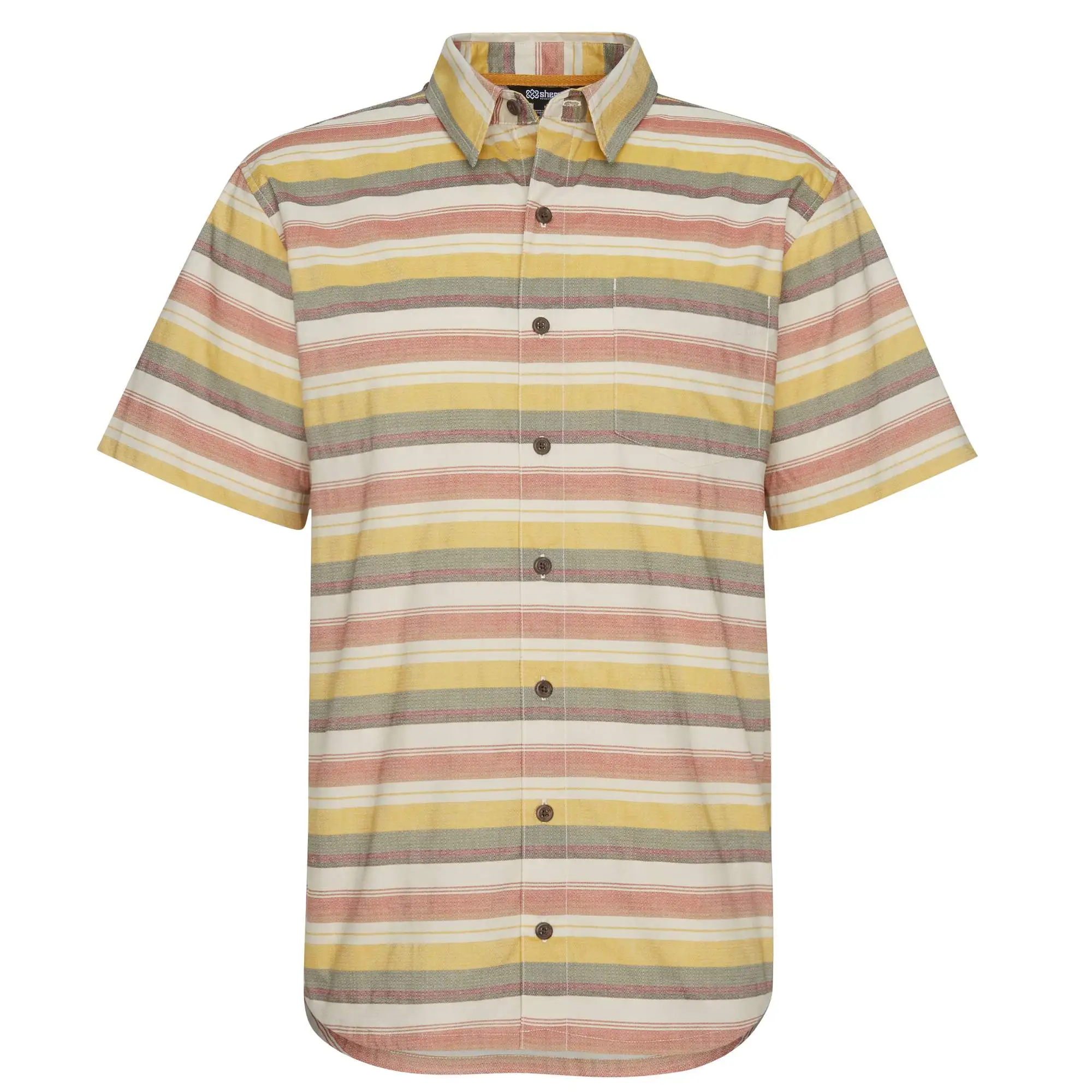 Durch das elastische Gewebe, den klassischen, bequemen Schnitt und die Bewegungsfalten am Rücken kannst du dich im Khelnu Shirt immer frei bewegen. Der stark abgerundete Saum sorgt für einen guten Sitz und in der praktischen Brusttasche kannst du Geld für ein Eis oder andere Kleinigkeiten unterbringen.