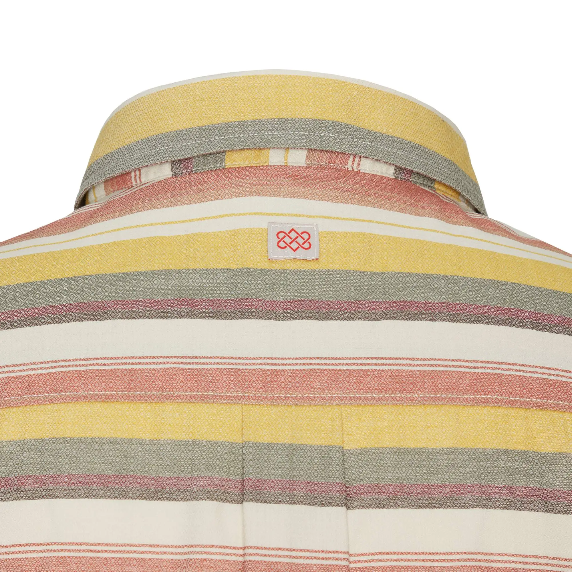 Auch ein näherer Blick auf das bunte Streifenmuster lohnt sich: Auf den Streifen selbst befindet sich nämlich wiederum ein hübsches, dezentes Rautenmuster, das zur zauberhaften Optik des Hemds beiträgt.
